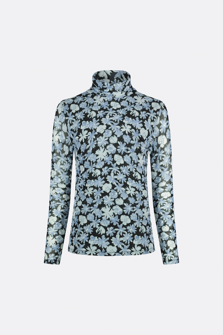 This women's top featuring a turtleneck, long sleeves and blue flower print, is perfect for any occasion. Crafted from 84% polyester (recycled) and 6% elastane, it offers a fitted silhouette. Pair it with our Bonnie Wide Leg Jeans for a casual yet stylish look.